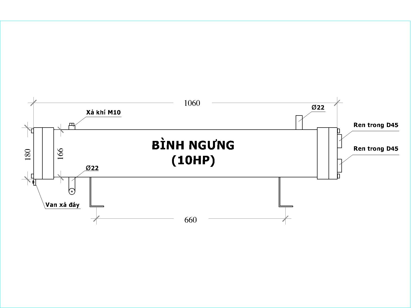 - Chiều dài bình: 1050mm