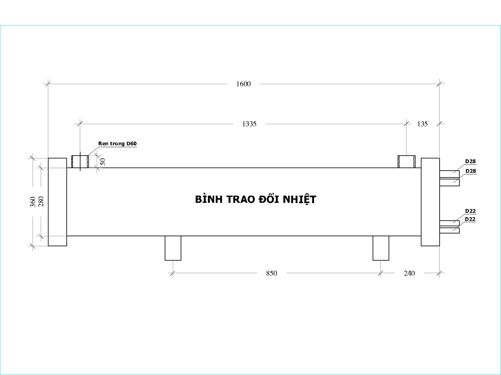 - Chiều dài bình: 1600mm