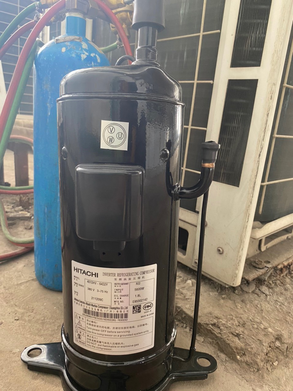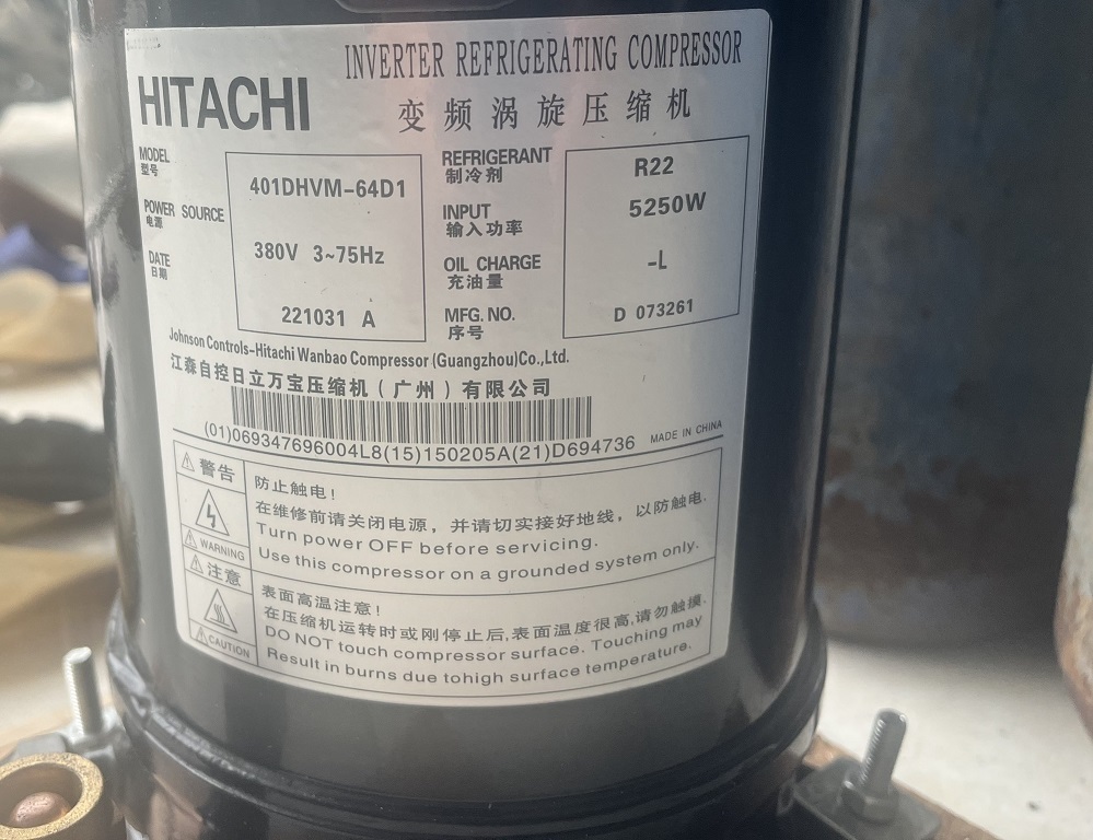 Máy nén 401 DHVM-64D1 là một dạng máy nén biến tần của Hitachi, sản xuất tại Trung Quốc.Thông số kỹ thuật: