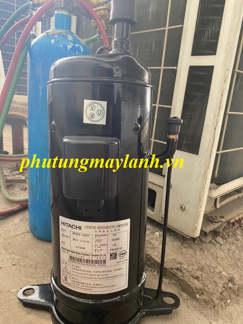 Máy nén 401DHVM-64D1 là dòng máy nén Inverter của Hitachi, thường được dùng trong điều hoà trung tâm và hệ VRF/packaged công suất trung bình.