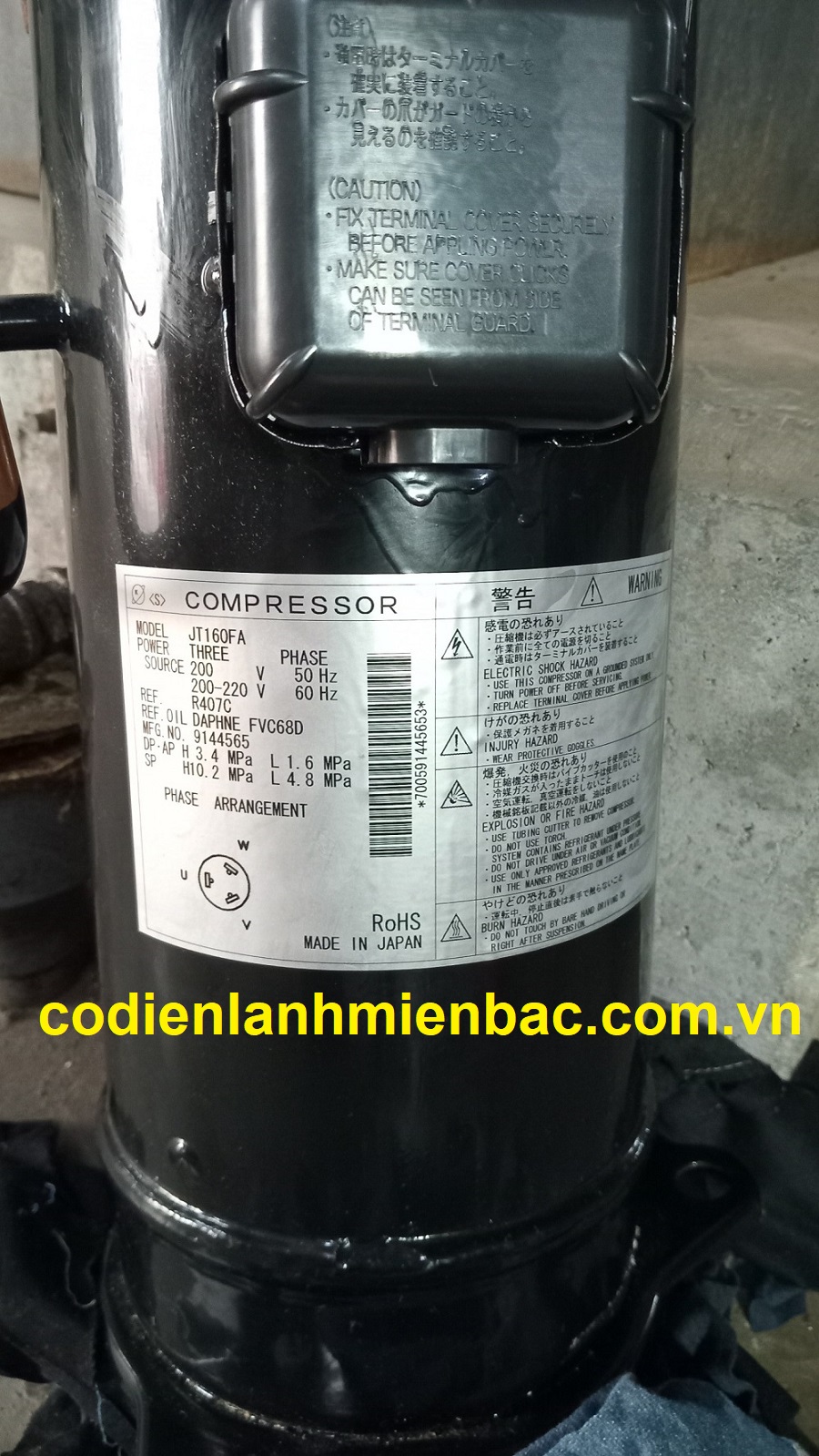 Máy nén JT160FA là một dạng máy nén của Daikin, sản xuất tại Nhật Bản. Máy sử dụng gas R407C.Thông số kỹ thuật Máy nén JT160FA