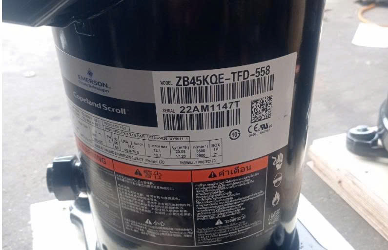 Máy nén ZB45KQE-TFD-558 là một dạng máy nén xoắn ốc của Copeland, sản xuất tại Thái Lan.