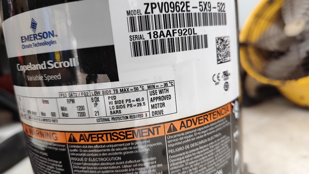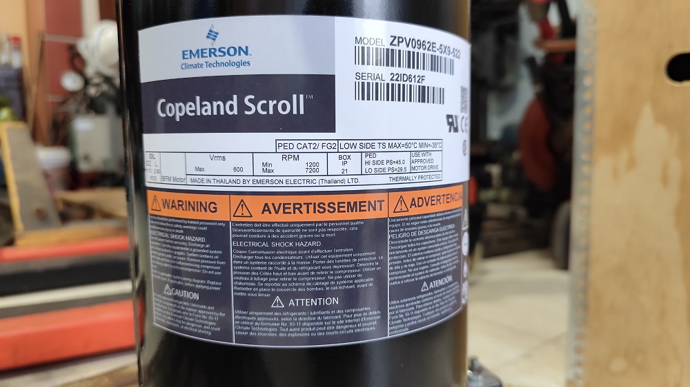 Máy nén ZPV0962E-5X9-522 là một dạng máy nén xoắn ốc của Copeland, sản xuất tại Thái Lan.