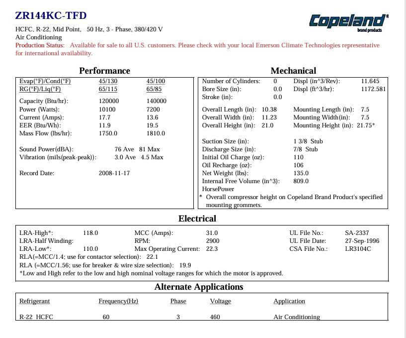 Thông số kỹ thuật máy nén ZR144-KC-TFD-522