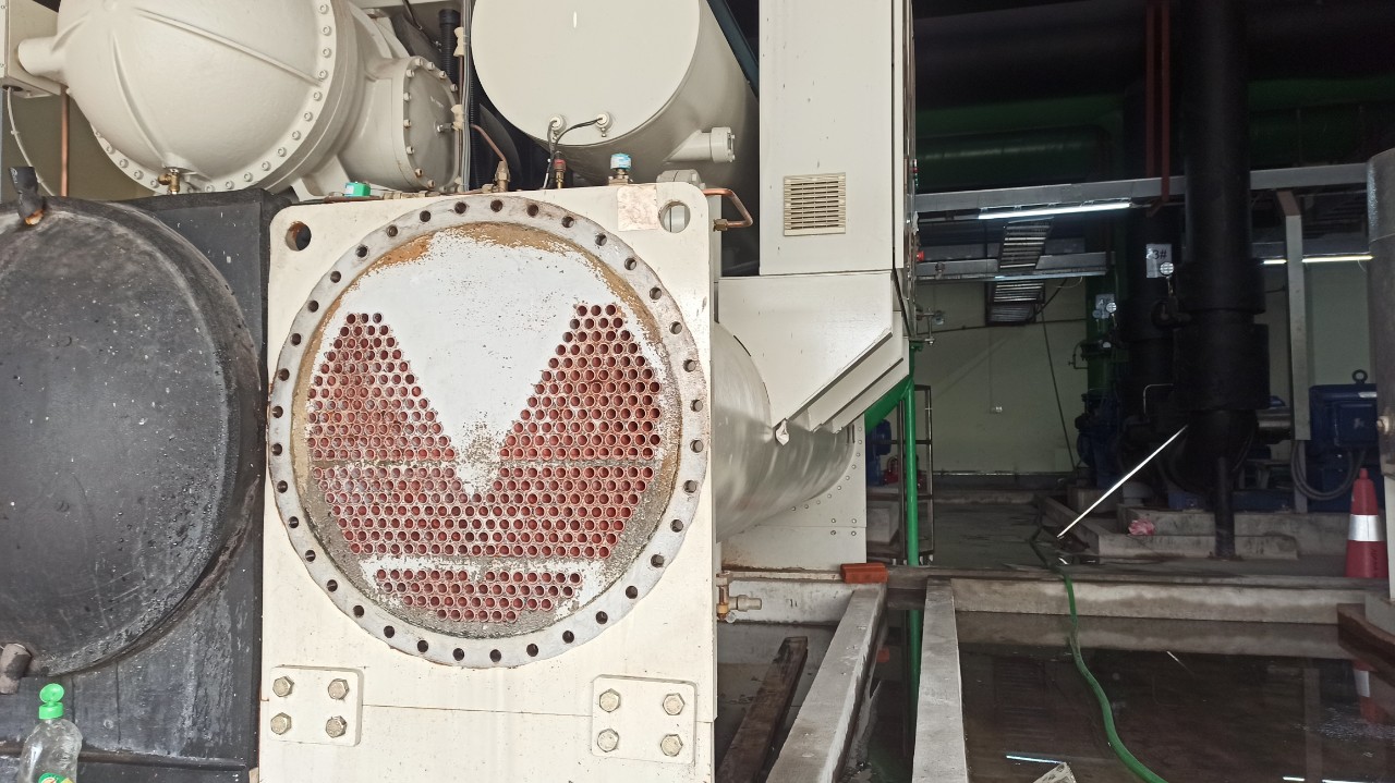 Chiller là cụm máy sử dụng môi chất là nước để truyền tải nhiệt. Do trong nước có rất nhiều thành phần các chất vô cơ, hữu cơ hòa tan như: Ca, Mg, Fe, Zn, Oxi,….. Nên sau một thời gian sử dụng một số chất này kết tủa, lắng đọng bám vào bề mặt hệ thống ống kim loại. Từ đó làm giảm hiệu suất trao đổi nhiệt, ăn mòn hệ thống và cản trở sự lưu thông của dòng nước. Vậy việc tẩy rửa bình ngưng là công việc bắt buộc phải thực hiện định kỳ nếu bạn muốn hệ thống đó hoạt động đạt hiệu suất cao, ít hao tổn điện năng…
